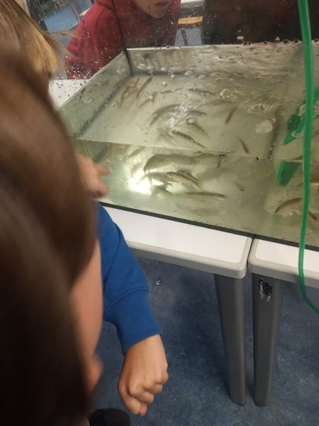 Zuerst haben sie uns erklärt, wo die Tiere leben und was sie fressen. Viele von uns waren überrascht, wie unterschiedlich die Tiere aussahen – manche Fische waren ganz glatt, andere hatten große Schuppen, und die Krebse hatten riesige Scheren!