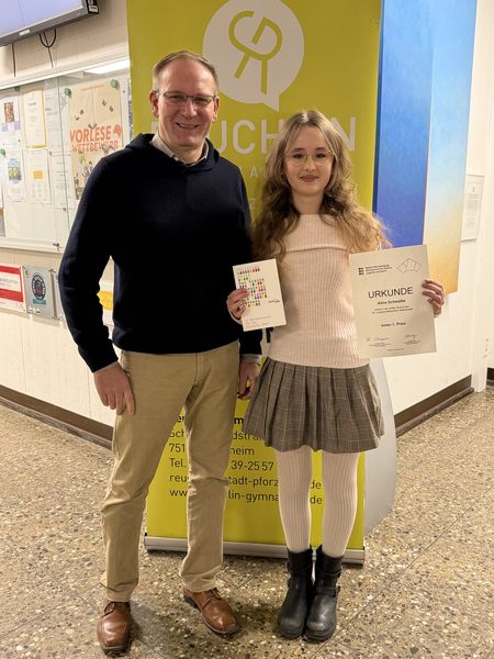 Dezember 2025: Große Freude an unserer Schule: Die Schülerin Alina Schwalbe aus der Klasse 10a hat in der ersten Runde beim diesjährigen Landeswettbewerb Mathematik den 1. Preis belegt.