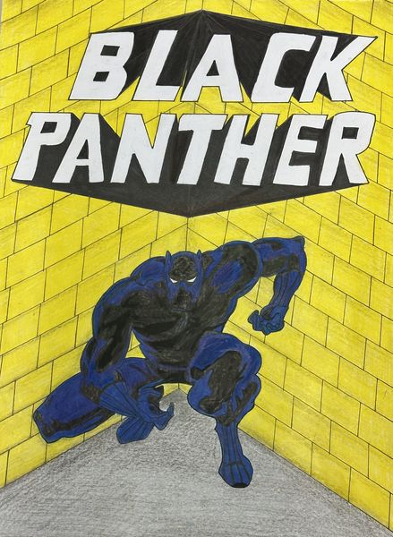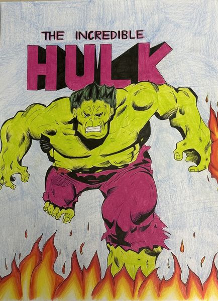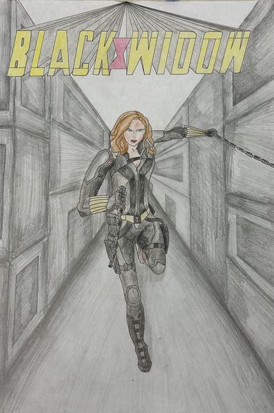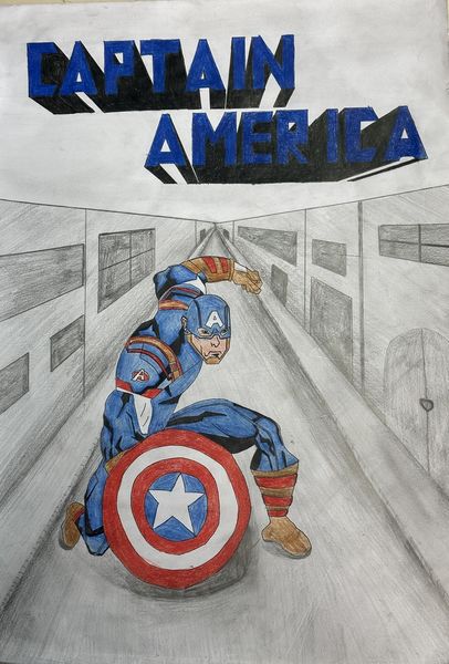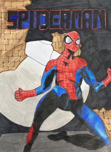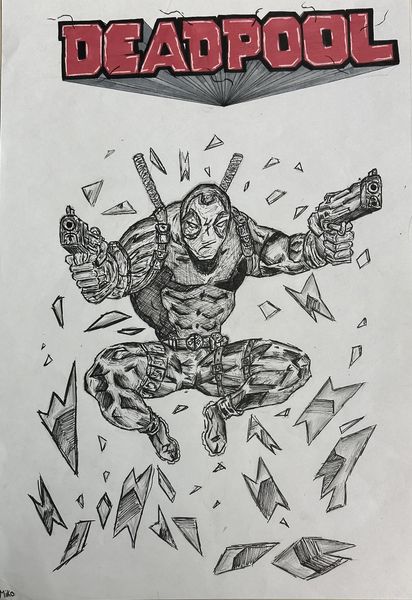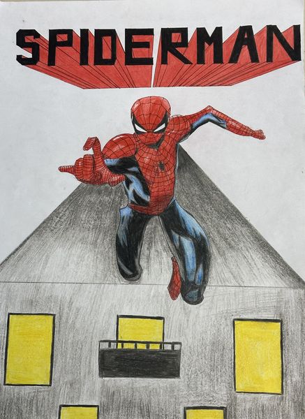 Die Aufgabe war es, eine Marvelfigur zu zeichnen. Mit Hilfe der Zentralperspektive sollten wir noch den Hintergrund oder die Schrift gestalten.