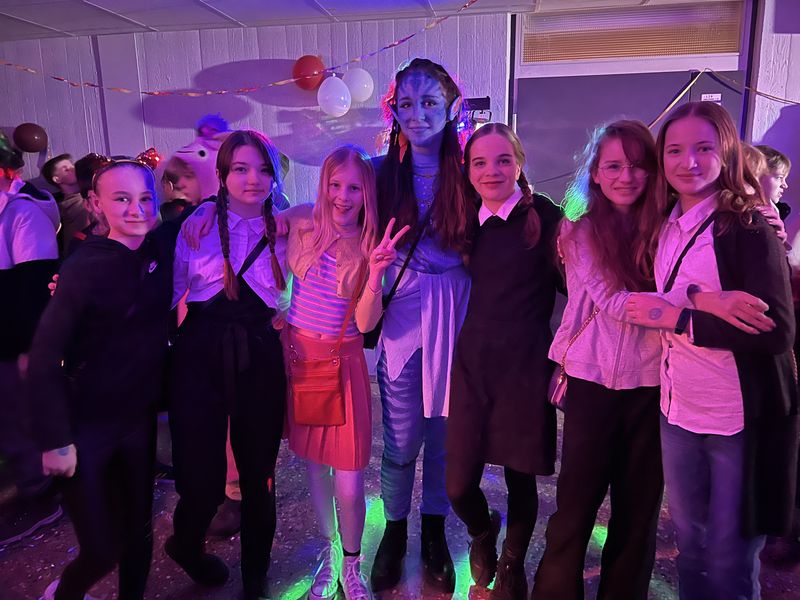 Die SMV konnte dieses Jahr eine Faschingsparty für die 5. - 7. Klassen veranstalten. Unter den 150 anwesenden Schülern haben sich die meisten mit dem Motto ,,Filmcharaktere“ gänzlich ausgetobt. Es waren sehr viele beeindruckende und kreative Kostüme dabei, so z.B. Phineas & Ferb, der Avatar, Tommy Shelby, Bugs Bunny und auch der Hauptcharakter aus ,,Wednesday“ war sehr beliebt.