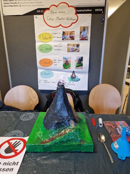 Die Jugend forscht AG des Reuchlin-Gymnasiums war in der Wettbewerbssparte „Schüler experimentieren“ der jüngeren Forscher mit drei Projektgruppen vertreten: Philip Daniel, Alessio Masiello und Maximilian Kirfel hatten als Forschungsarbeit einen selbstgebauten Vulkan eingereicht, der mit Hilfe von Mentos-Kaubonbons und Cola zur Eruption gebracht werden konnte. Yakup Dülgar, Laurin Klotz und Arina Rosemeier präsentierten ihre Forschungsergebnisse zum richtigen Lüften in Klassenräumen, die sie mit Hilfe eines Mikrocontrollers und einem selbstgeschriebenen Programm erhoben hatten. Yannis Dietrich hatte den „fliehenden Wecker“ konstruiert, der sich nach dem Klingeln vom Bett wegbewegt und man somit aufstehen muss, um ihn auszuschalten.