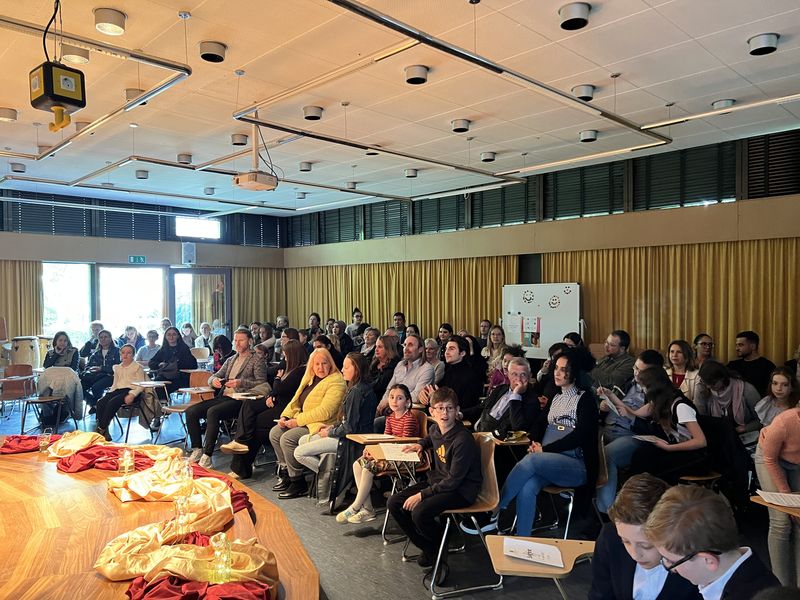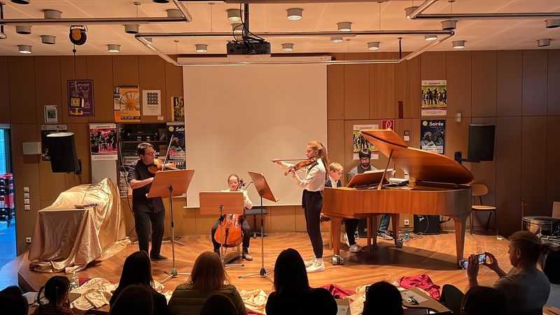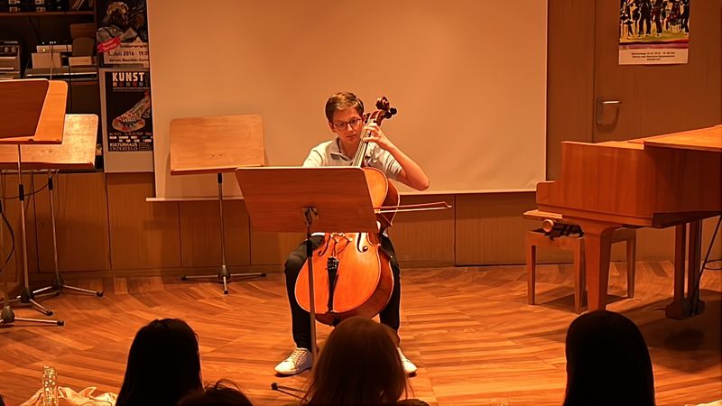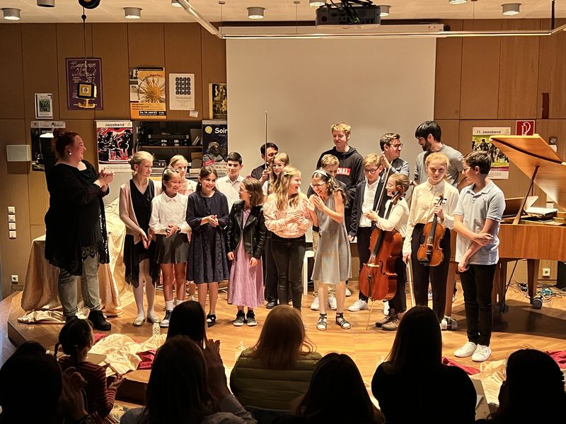 Und wie breitet man sich auf solch einen Abend als Aktiver vor? Im stillen Kämmerlein? Alleine? Das vielleicht auch, aber neben der privaten Musikstunde und dem eigenen Zuhause ist auch die Schule ein beliebter Probenort: Man probte in den großen Pausen im Atrium, am Rand des Unterrichts oder in den Unterrichtsstunden, fand sich zu diversen Vorspieltrainings zusammen, um dann letztendlich eine gemeinsame Generalprobe zu haben, die in einem wunderbaren Abend im Pavillon der Schule endete.