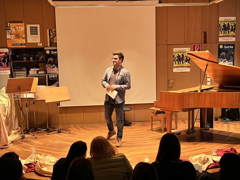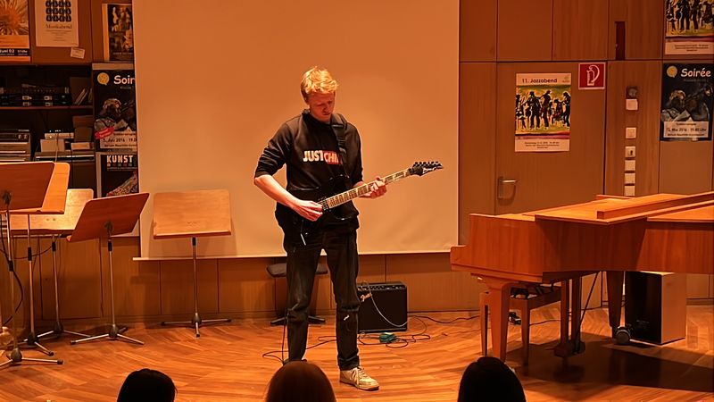 Kurz vor Anmeldeschluss (spät am Abend am Wochenende) kam noch eine Nachricht „Darf ich auch was ‚nicht‘ Klassisches vorspielen? Und bin ich noch rechtzeitig mit der Anmeldung?" Das sind die Momente als Musiklehrer, die man nicht missen will, wenn man überrascht wird, wie hoch auch das technische Können und der musikalische Anspruch von nicht-klassischen Stücken sein können. Und, wieso nicht? Es muss nicht immer Klassik sein, bei einer Soirée. Unsere schuleigenen Musikerinnen und Musiker sind ebenso vielfältig wie die Musik selbst. Denn schließlich muss gesagt werden: Ohne die musikalische Expertise von Johann Sebastian Bach hätte sich die sogenannte U-Musik (alles, was der Volksmund als nicht-klassisch bezeichnet) und z.B. eine Band wie Polyphia nie entwickelt, denn vielen Stilen liegen Kirchentonarten und andere Modi zugrunde.