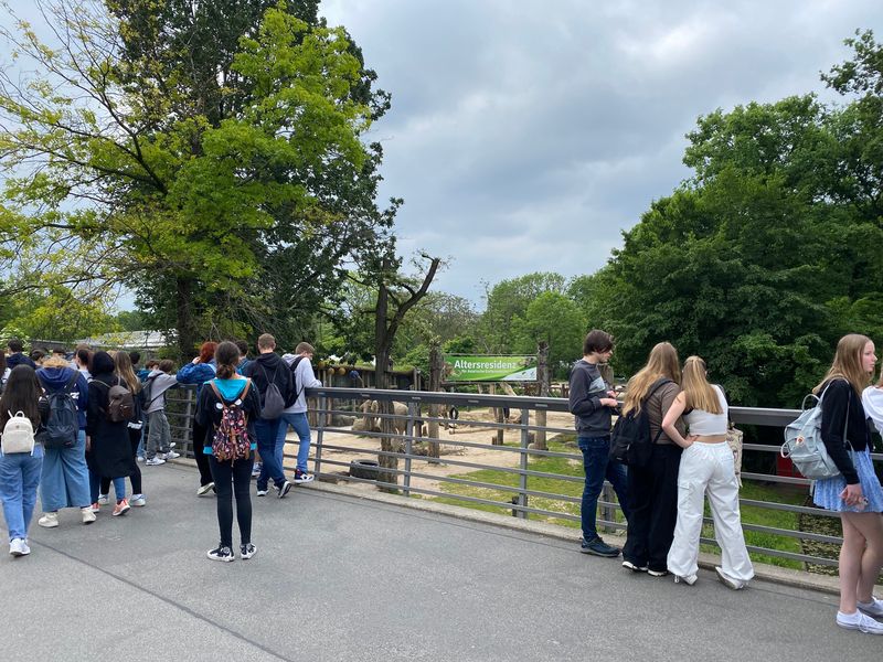 Nach der gemeinsamen Fahrt zum Hauptbahnhof Karlsruhe führte uns der Weg zum Kino an den Elefanten des Karlsruher Zoos vorbei. Neben den Elefanten konnte ebenfalls ein Pfau in seiner vollen Federpracht bestaunt werden.