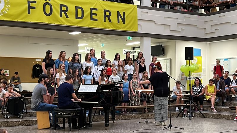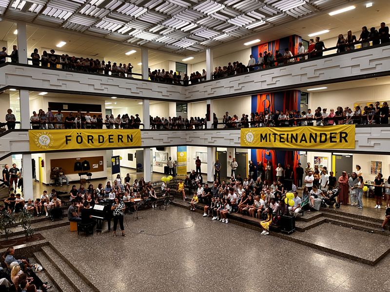 Die obligatorische Begrüßung im Atrium führte dann erstmalig die gesamte Schulgemeinschaft zusammen und markierte den offiziellen Start in das Schuljahr.