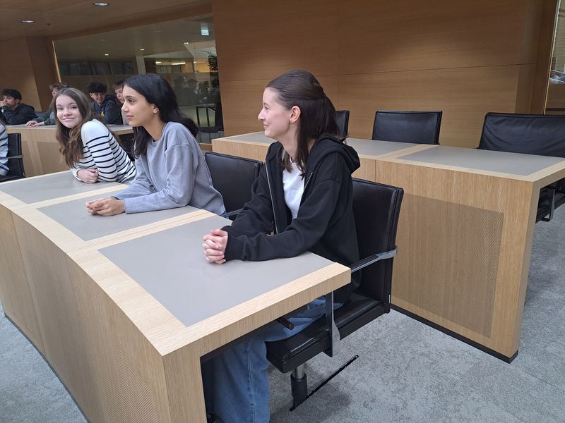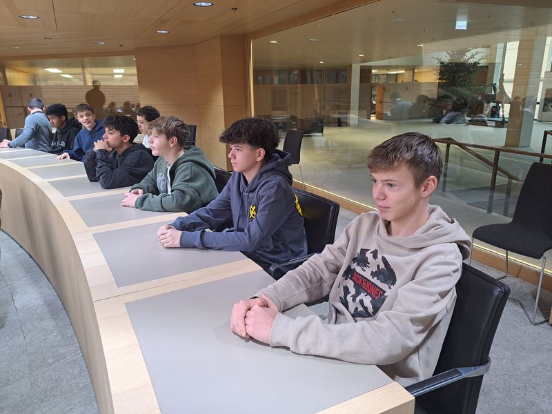 Begleitet wurden wir von unseren Lehrern Frau Schlittenhardt, Frau Schumacher und Herrn Müller. Wir sind pünktlich um 7.45 Uhr gestartet. Wir sind kurz nach 9 Uhr am Landtag angekommen. Dort wurden wir gleich freundlich in Empfang genommen. Wir besuchten - gemeinsam mit Schülerinnen und Schülern einer Tübinger Schule - den Plenarsaal und durften dort auf den Plätzen der Abgeordneten Platz nehmen. Es gab sogar einen Landtagspräsidenten. Wir erhielten die Chance, in Form eines Spiels unseren Ministerpräsidenten zu wählen. Das war spannend und kurzweilig. Und wir haben einen ersten guten Einblick in die Arbeit im Landtag erhalten. Danach ging es in einen anderen Raum, in dem die Landtagsabgeordneten Herr Dr. Schweickert und Herr Bamberger uns Rede und Antwort standen. Beeindruckt hat uns Dr. Schweickert, der 2013, weil die FDP nicht mehr in den Bundestag gewählt worden war, sein Büro als Bundestagsabgeordneter räumen musste und sich trotzdem nicht unterkriegen ließ. Er hat deutlich gemacht, dass die ihm durch Wahl gegebene Macht auf Zeit gegeben war. Um 11 Uhr endete auch dieses Gespräch und wir machten noch ein Gruppenfoto. Und dann ging es ab auf den Weihnachtsmarkt, bevor es wieder zurück nach Pforzheim ging. Es war toll, raus aus der Schule gewesen zu sein. Der Tag war super. Wir freuen uns schon jetzt auf unseren nächsten Ausflug!