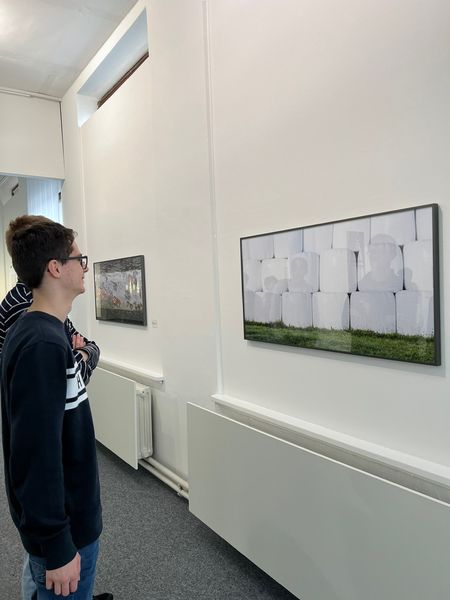 Nach dieser Einführung haben wir uns gemeinsam die Bilder der Ausstellung angeschaut und über ein paar der Bilder gesprochen. Wir haben uns dabei auch über das Gewinnerbild der Ausstellung unterhalten, da die Ausstellung auch ein Wettbewerb war. Das Bild hieß ,,sleepmode‘‘ und es waren zwei Kunstwerke, die jeweils das gleiche Geschehen, jedoch aus zwei verschiedenen Perspektiven zeigten.