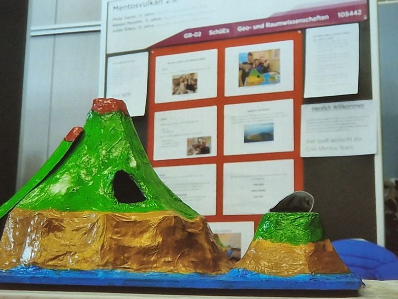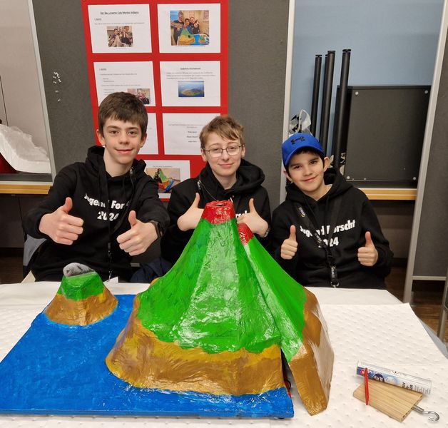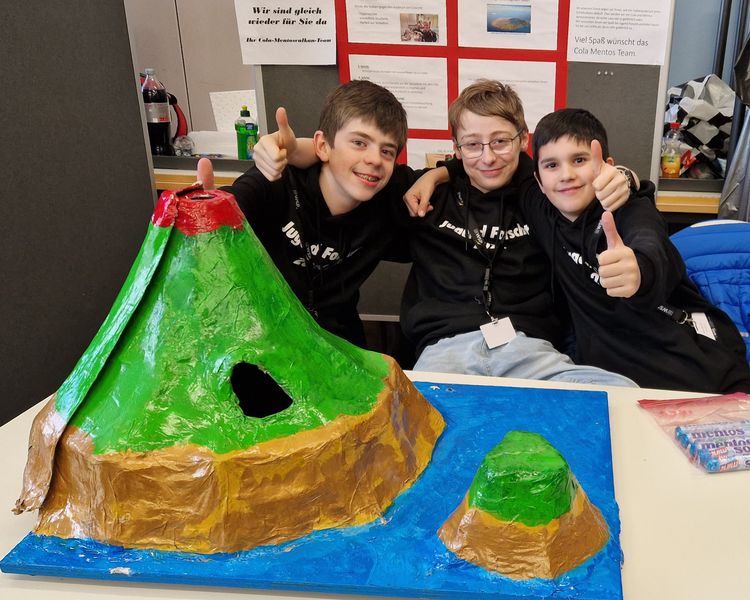 In der stimmungsvollen Ehrungsfeier im Audimax der Hochschule Pforzheim würdigte die Jury die kreativen Ideen der Reuchlin-Schüler mit entsprechend guten Platzierungen und Sonderpreisen. Im Fachgebiet Biologie belegten Jana Lambiase und Allyson Crabtree den dritten Platz und konnte als Sonderpreis zusätzlich ein Jahresabonnement der Zeitschrift „natur“ gewinnen. Noch besser schnitten Philip Daniel, Alessio Masiello und Julian Eilers im Bereich Geo- und Raumwissenschaften ab. Mit ihrem „Mentosvulkan 2.0“ konnten sie die Juroren erneut überzeugen und erreichten wie im Vorjahr einen hervorragenden zweiten Platz.