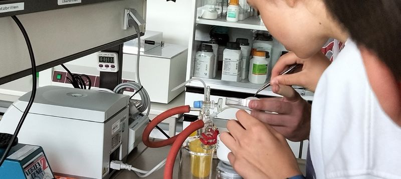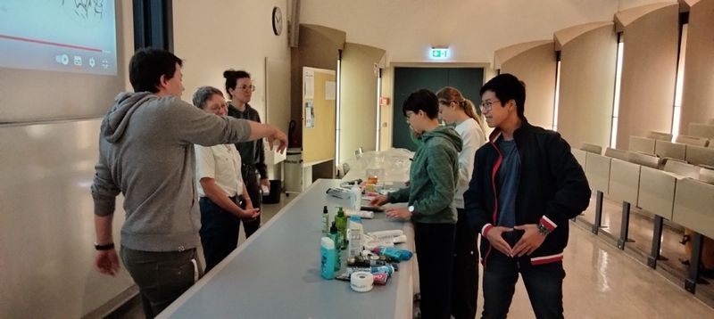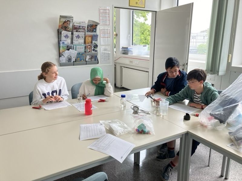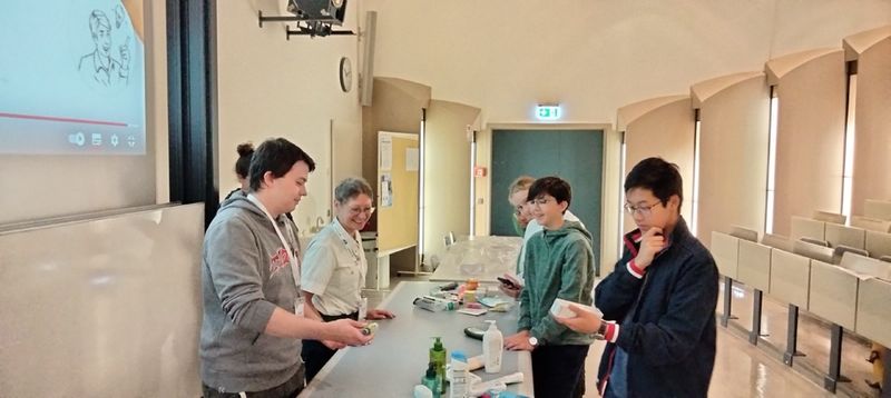 Im Anschluss haben wir Kosmetikprodukte (z.B. Shampoo) analysiert und mit UV-Licht nach Mikroplastik überprüft. Danach lernten wir die verschiedenen Kunststoffsorten näher kennen und bekamen eine Wiederholung zum Thema Mülltrennung. Beim zweiten Teil hat uns ein Professor eine Menge über das KIT erzählt und anschließend einen interessanten Versuch mit Magneten und flüssigem Stickstoff vorgeführt.