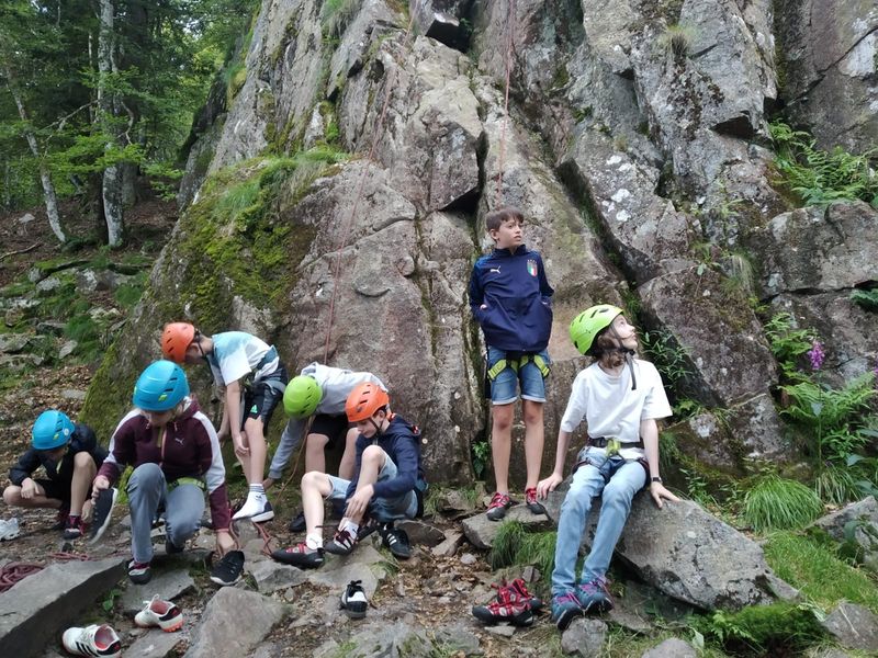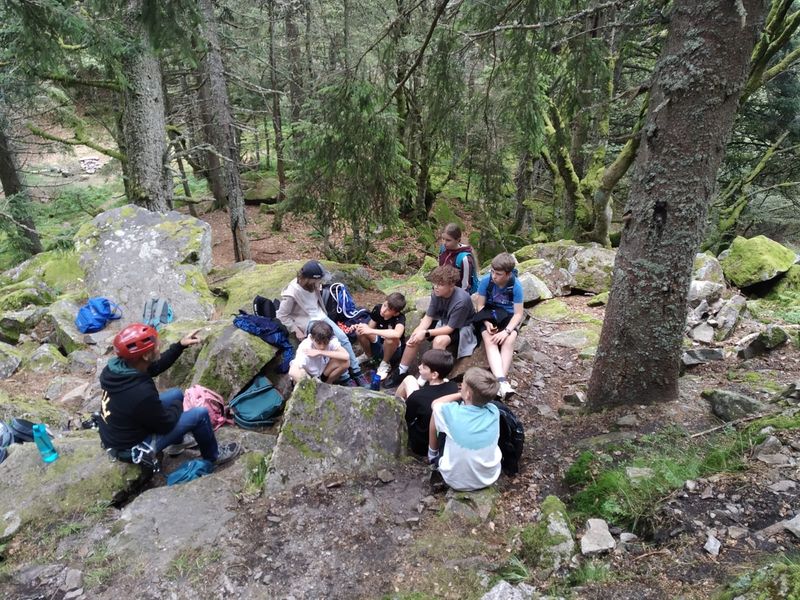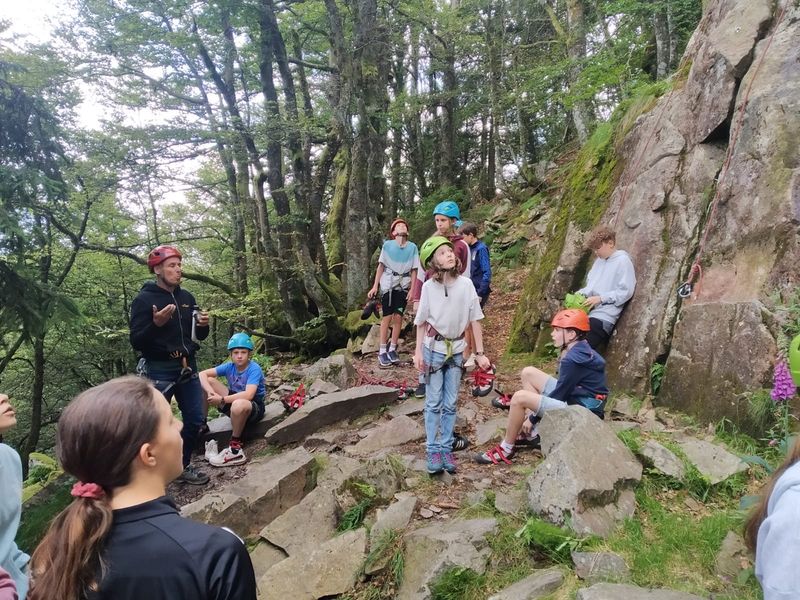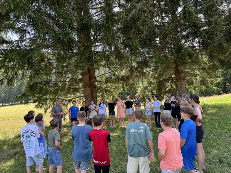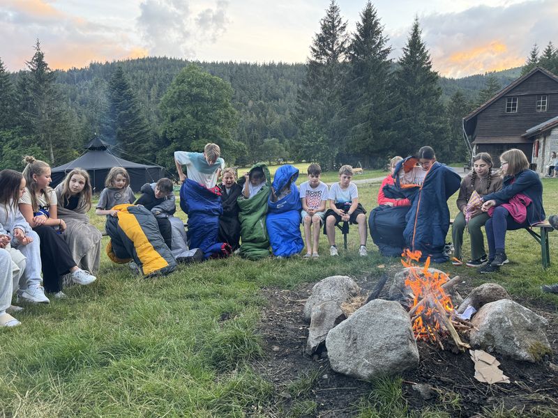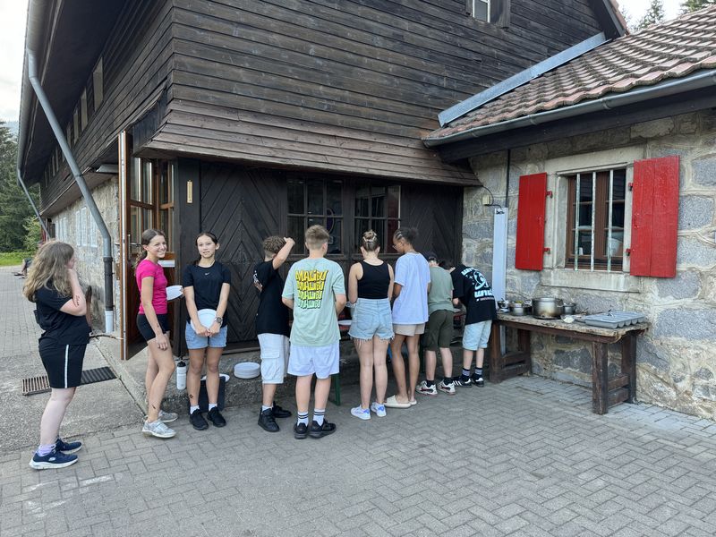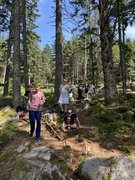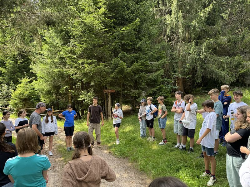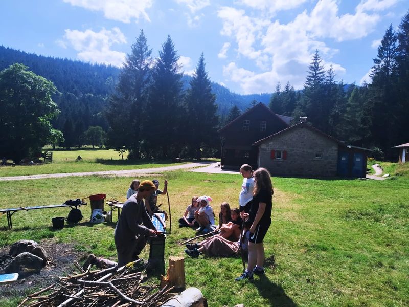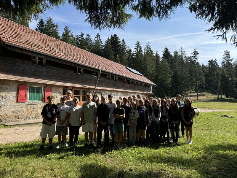 Heute sind wir im Landschulheim in den Vogesen angekommen. Nach einer 3-stündigen Busfahrt waren wir endlich da und nach weiteren 30 min Fußmarsch bergauf kamen wir dann an unserem abgelegenen Heim an. Zuerst haben uns die Betreuer begrüßt und dann bezogen wir unsere Zimmer. Kurz darauf gabs schon Mittagessen: täglich kalt, Brot, Käse, Gemüse etc. Nach dem Essen hatten wir erst mal Freizeit, die wir mit Fußball, Frisbee und American Football verbrachten. Danach haben wir uns alle draußen getroffen und ein erstes Namensspiel gespielt, damit die Betreuer unsere Namen kennenlernen. Nach dem Spiel hatten wir erneut Freizeit, bevor das Abendessen mit Käsespätzle auf uns wartete. Nach dem Essen haben wir über unseren ersten Tag hier gesprochen und bekamen ein Zauberspiel erklärt, das über die gesamte Woche gespielt wird, bevor es für alle auf die Zimmer in die Nachtruhe ging. Auf den Zimmern konnten wir noch miteinander reden, bevor wir dann eingeschlafen sind.