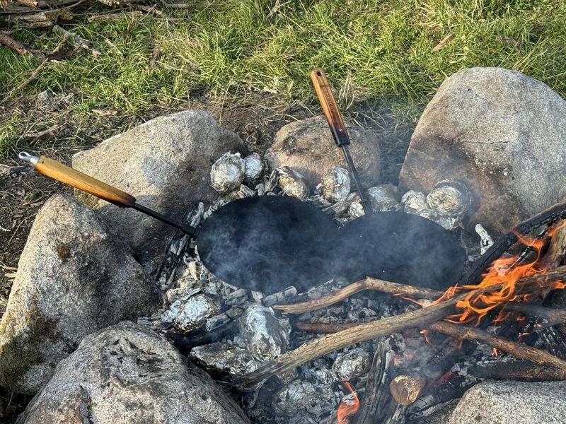 Da dies auch der letzte Tag war , sollte der Abend etwas ganz Besonderes werden. So gab es Esse am Feuer: Wikingerfladen und Stockbrot, dazu Salate und diverse Füllungen für die Fladen. Nach dem Essen bildete dann der bunte Abend den Abschluss des Tages. Das Programm war sehr vielseitig: es gab ein Quiz, ein Theaterstück, das Spiel ‚Wer würde eher‘ und eine Dickmann-Challenge. Als Highlight gab es eine Modenschau, doch dies war keine gewöhnliche, denn Mädchen und Jungen tauschten die Rollen – und Klamotten. Nach diesem gelungenen Abend gingen alle zufrieden schlafen.