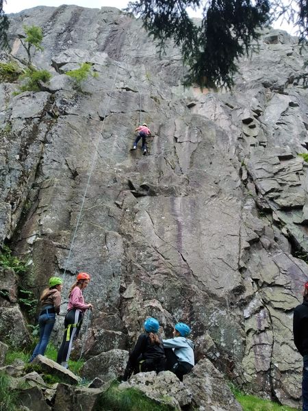 Heute sind wir um 8 Uhr aufgestanden und haben uns für das Frühstück fertiggemacht. Wie gestern auch gab es Brot, dazu passende Aufstriche, Obst, Gemüse, Müsli, Joghurt und Käse. Später hat sich die Klasse in verschiedene Gruppen aufgeteilt, die jeweils morgens und abends Felsklettern und Bogenschießen gegangen sind. Während die erste Gruppe Klettern war, konnten sich die anderen dem Bogenschießen und Henna Tattoos widmen. Zum Mittagessen gab es Reste vom Vortag sowie Brot und diverse Brotaufstriche. Am Nachmittag ging es mit dem Programm weiter wie am Vormittag, damit jeder die Möglichkeit hatte, alle Aktivitäten auszuprobieren. Nachdem es Spaghetti mit Soße und veganem Fleisch gab, bekamen alle Schüler ein leckeres Eis. Zum Abschluss des Tages versammelten sich alle am Lagerfeuer. Dort wurde wieder der Tag besprochen und bei Gesang mit Gitarrenbegleitung ging dieser dritte Tag zu Ende. Auch in dieser Nacht konnten einige Schüler wieder unter freiem Himmel schlafen, die anderen gingen auf ihre Zimmer.