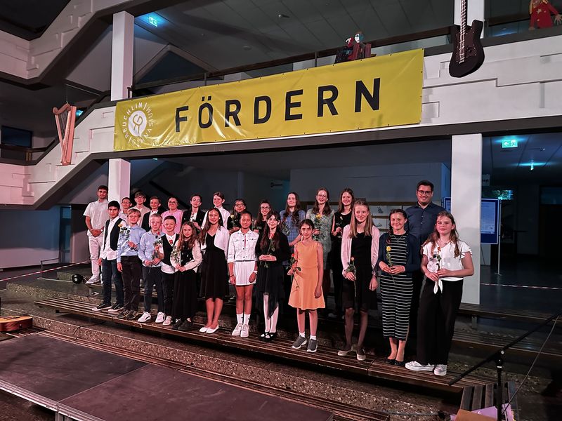 Das Publikum erwartete ein abwechslungsreiches Programm von klassischer bis zu Pop- und Filmmusik. Neben solistischem und mehrstimmigem Gesang war auch die Wahl der Instrumente sehr vielfältig. So waren ganz verschiedene Instrumente wie Klavier, Blockflöte, Klarinette, Gitarre und Ukulele zu hören. Die erste Hälfte stand ganz im Zeichen der Klassenstufen 5 und 6. Bereits die jungen Musikerinnen und Musiker stellten ihr musikalisches Talent unter Beweis. Bei verschiedensten Stücken aus aller Welt trauten sich viele ganz alleine auf die Bühne, aber auch zwei Duette aus der Klassenstufe 5 erhielten großen Applaus. Die zweite Hälfte begann mit einem fünfköpfigen Ensemble der Klasse 6a, bevor die höheren Klassenstufen ihr Können zeigten und teilweise mit virtuosen Passagen das Publikum begeisterten. Zum Schluss des Konzerts traten Maria Panani und Daniel Berinde aus der Kursstufe 2 zum letzten Mal auf und ließen es sich nicht nehmen, eine spontane Zugabe zum Besten zu geben. Im Namen von Herrn Junge und Herrn Weigand sowie der weiteren Musikfachschaft möchten wir uns ganz herzlich bedanken bei allen mitwirkenden Musikerinnen und Musikern und allen, die hinter den Kulissen zu einem gelungenen Abend beigetragen haben! Wir alle freuen uns bereits sehr auf die Soirée 2025.
