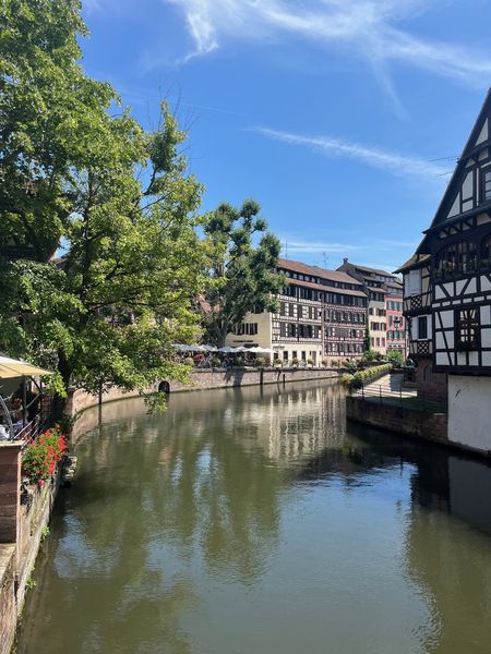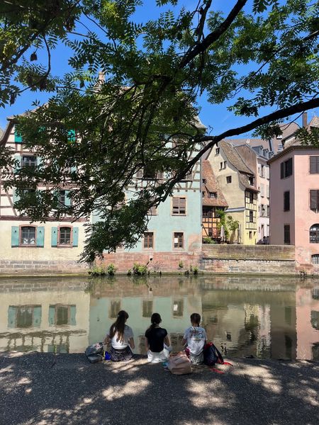 Nach der Fahrt durften wir in Kleingruppen etwas zu Essen kaufen. Mit diesem Essen liefen wir zu einem kleinen Platz am Fluss im Gerberviertel „Petite France“ um zu picknicken.