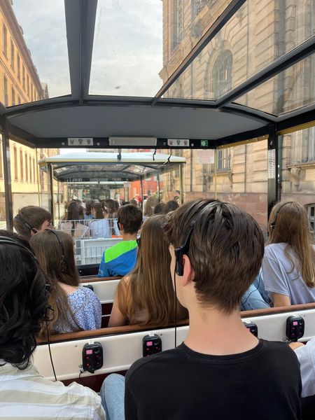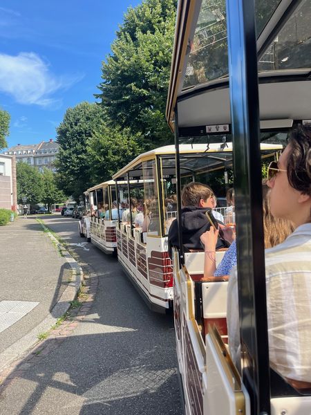 Als wir wieder draußen waren, liefen wir zum kleinen Touristenzug „le petit train“. Mit diesem fuhren wir durch die Altstadt Straßburgs. Uns wurde, über Kopfhörer, die Geschichte der einzelnen Gebäude und Plätze erzählt. Es war sehr spannend!