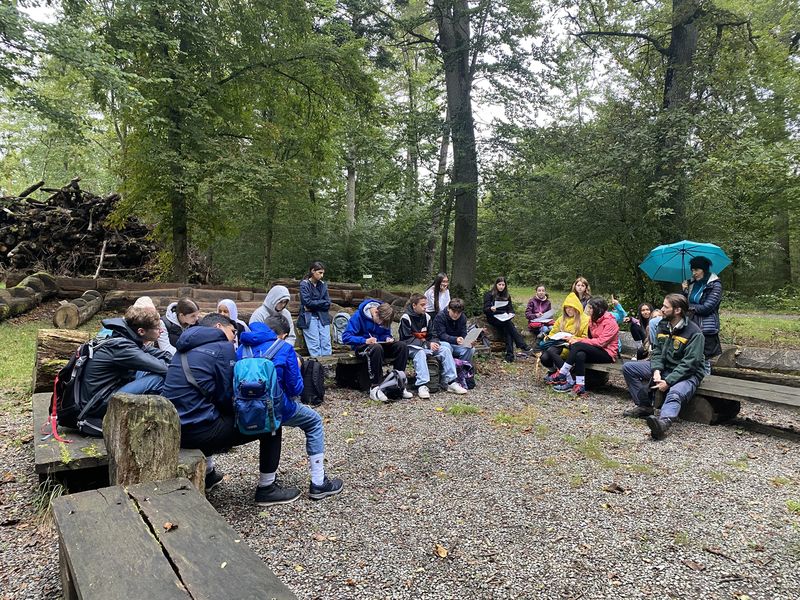 Wir versammelten uns am Reuchlin und fuhren nach einer Weile los. Die Busfahrt dauerte etwa zwei Stunden. Nach unserer Ankunft am LSZU wurden wir in unsere Zimmer eingeteilt und uns wurde das Gelände gezeigt. Nachdem wir uns eingerichtet hatten, gab es um 12:00 Uhr auch schon Mittagessen. Der Unterricht begann nach einer ausgiebigen Pause um 13:00 Uhr. Dieser fing mit einer kleinen Schatzsuche an. Bei dieser Aufgabe entdeckten wir unsere Schwächen, da wir nicht so gut mit den GPS-Geräten auskamen. Das war aber nicht allzu schlimm, da uns unsere Lehrer ausgeholfen haben. Der Abend verlief normal, wir aßen um 18:00 Uhr zu Abend und befanden uns in unseren Zimmern, als die Nachtruhe begann. Die nächsten drei Tage bestanden aus einer interessanten Waldführung, vielen Aktivitäten außerhalb des Klassenraums und einem tollen Ausflug ins Sägewerk. Letztendlich war der Aufenthalt am LSZU ein tolles Erlebnis für uns alle und wir sind zufrieden nach Hause gefahren.