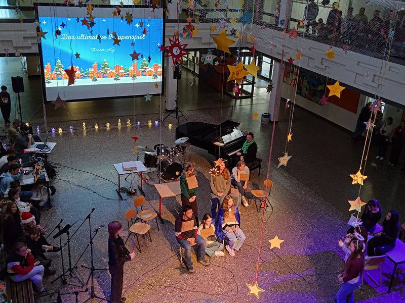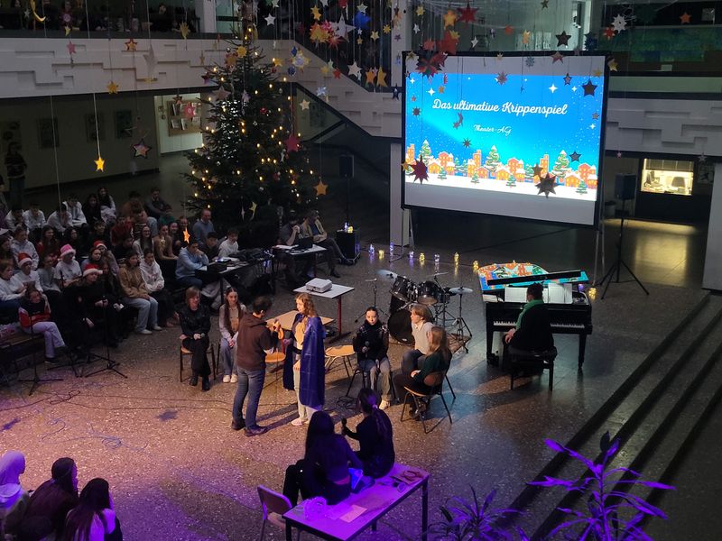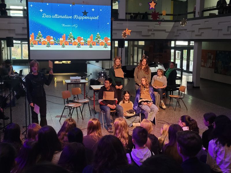 Beim ultimativen Krippenspiel der Theater AG, wieder ins Leben gerufen von Frau Chluba, fanden Maria und Josef mit erfinderischem Einsatz doch noch eine Herberge, und der krankheitsbedingte Ausfall des Esels konnte ausgeglichen werden, obwohl sich der Hirte mit (s)einer „gespaltenen Persönlichkeit“ schwertat nicht vor den Hirten auf dem Feld zu erschrecken.