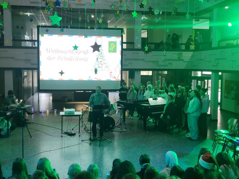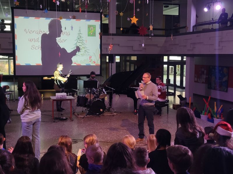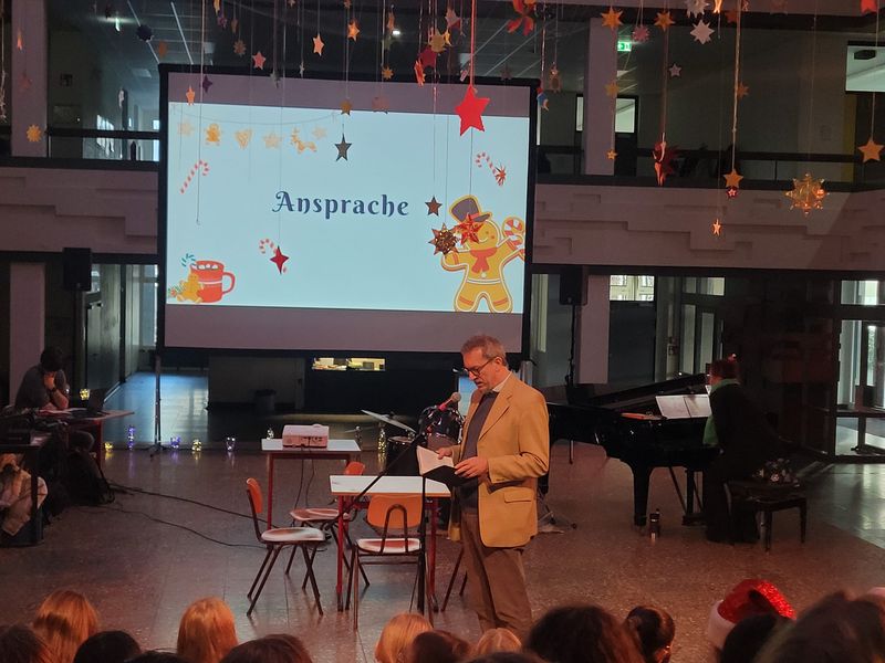 Unser neuer Schulleiter Herr Essich lud uns mit einer Weihnachtsgeschichte zu weihnachtlichen Gedanken ein und wünschte der ganzen Schulgemeinschaft Frieden und Gesundheit.