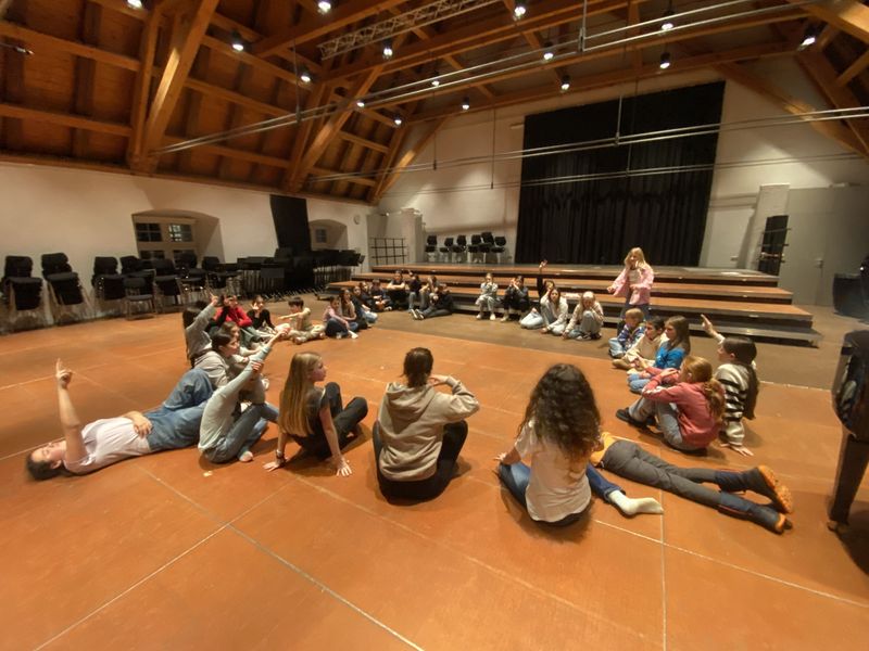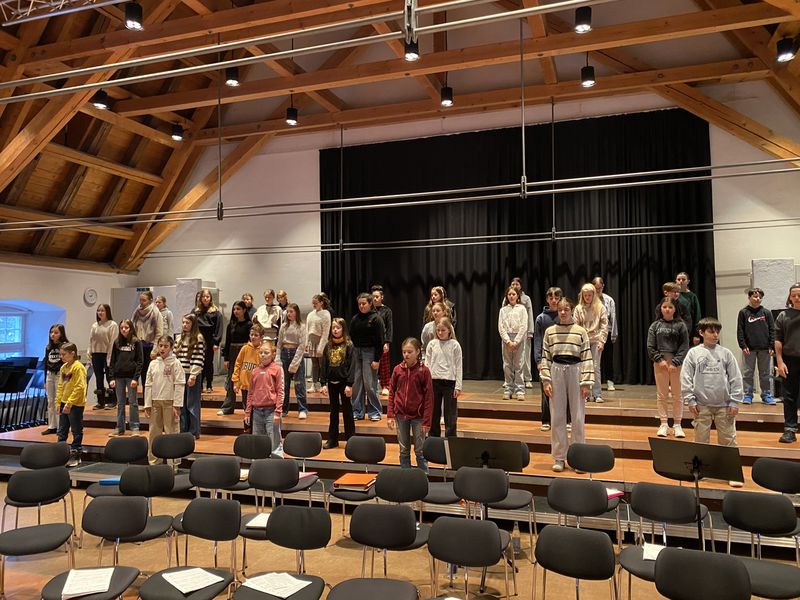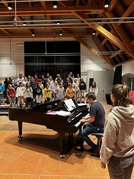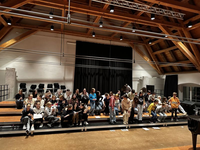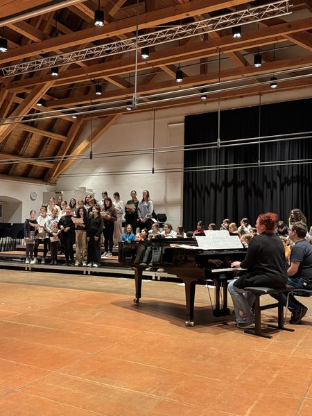 Der Unterstufenchor von Herrn Weigand bereitete neben der Reuchlin Rhapsody parallel auch noch ein Musical vor, das dieses Schuljahr zur Aufführung kommen soll. Deshalb lag der Schwerpunkt neben dem Singen auch auf schauspielerischer Probenarbeit.