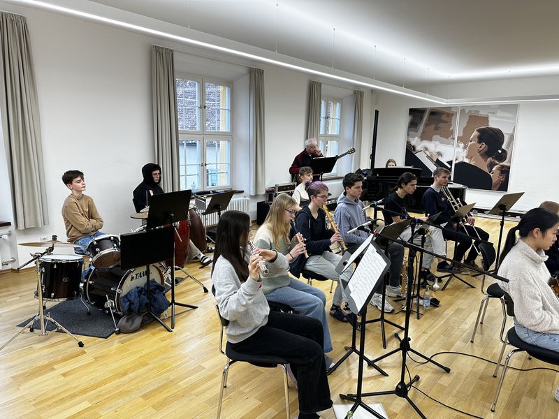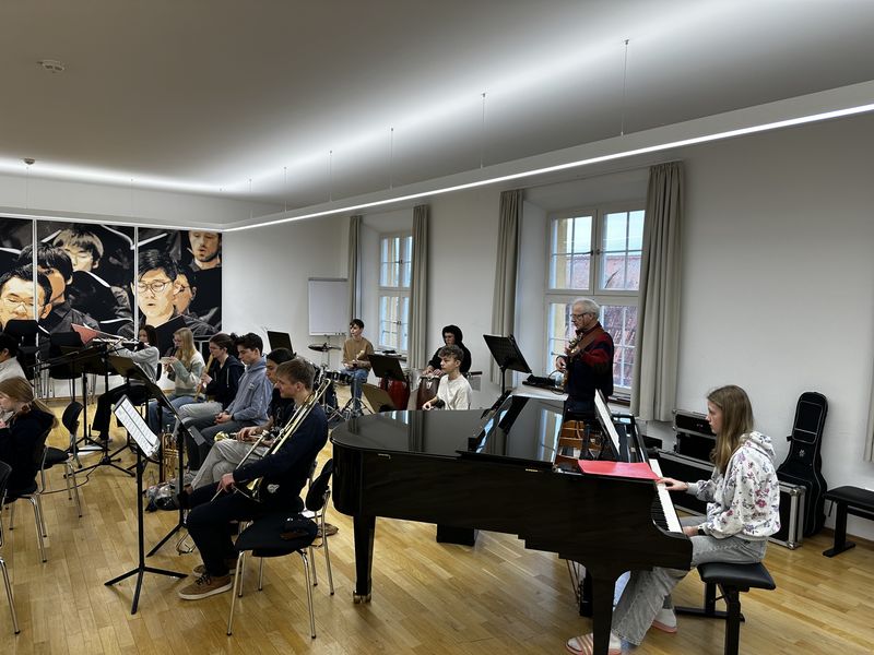 Mit der Unterstützung einiger Ehemaliger wurde in bewährter Manier das neue Konzertprogramm erarbeitet. Dabei blieb immer noch Zeit für Phasen des Improvisierens und einer Jamsession.