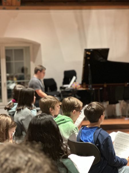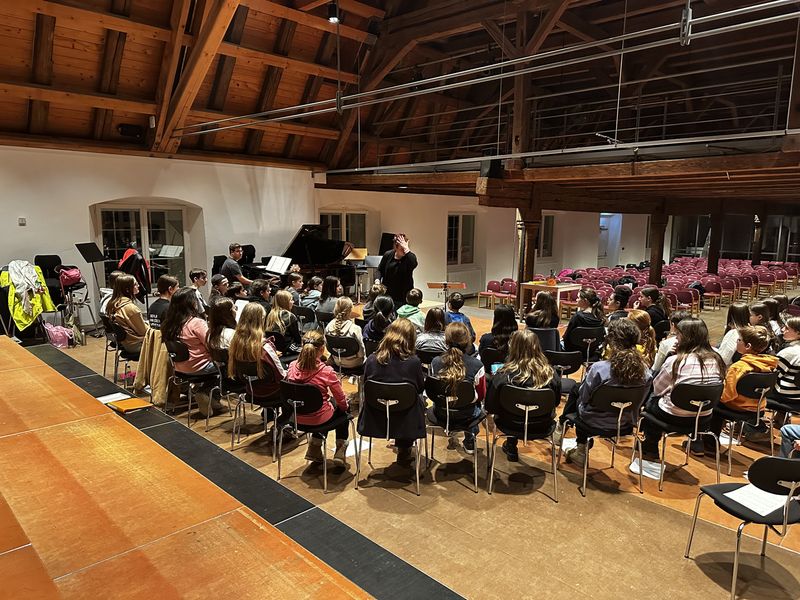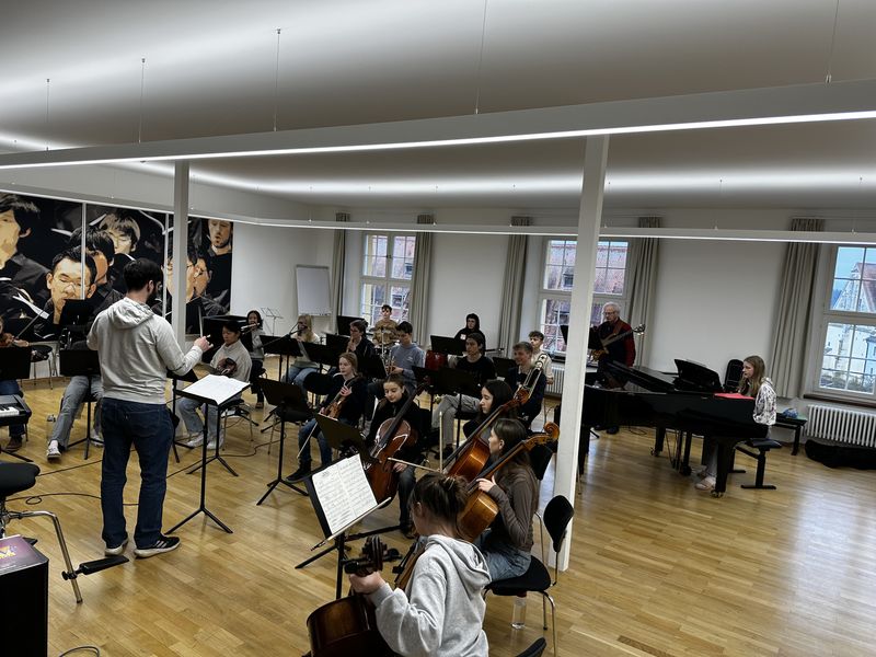 Am zweiten Abend trafen sich alle Ensembles im Konzertsaal der Akademie und präsentierten sich gegenseitig den aktuellen Stand der Probenarbeiten.
