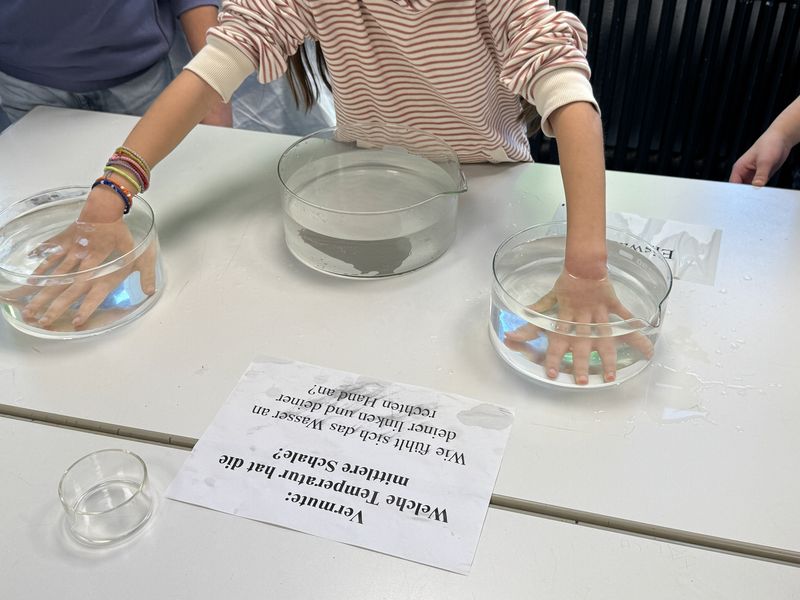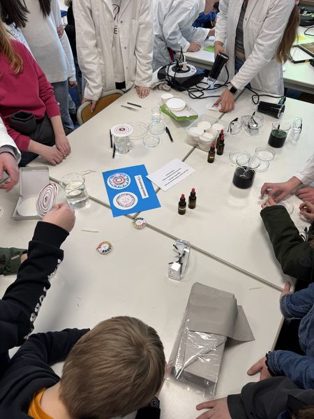 Nach einer Hausführung, in denen die Gäste verschiedene naturwissenschaftliche Experimente und einen Einblick in die Sprachen erleben konnten, hatten sie Zeit zum Verweilen. An verschiedenen Stellwänden konnte man nochmals vertieft in das Angebot der Schule eintauchen und mit Lehrern, Eltern und Schülern der Reuchlinfamilie ins Gespräch kommen.