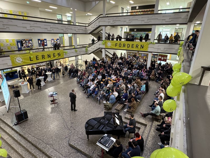 In verschiedenen Mitmachräumen hatte man Gelegenheit, selbst aktiv zu werden: sei es bei einer Kinovorführung des musikalisch-kreativen Angebots an der Schule nebst Photowand und Sofortbildkamera, bei einem Theaterstück einer Lateinklasse oder dem vielfältigen Angebot, das bei der (Hausaufgaben-) Betreuung am Nachmittag auf einen wartet – es war für alle etwas dabei. Und wer selbst tätig werden wollte – über Schach, Tischfußball und Airhockey hinaus – , der konnte sich im Sprachen- oder im Naturwissenschaftsraum ausleben und sein Können unter Beweis stellen.