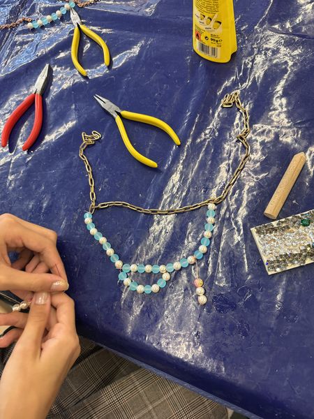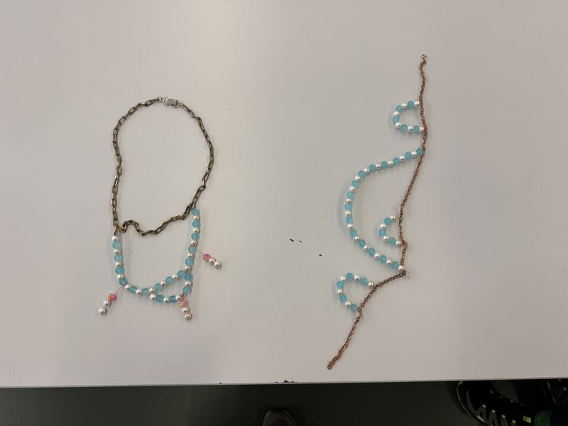 Als nächstes konnte jeder zeigen, wie kreativ er werden kann und im Handumdrehen wurden aus den Schülern der 5a kleine Schmuckdesigner. Egal ob Brosche, Halskette oder Ohrringe, die Ergebnisse konnten sich sehen lassen.
