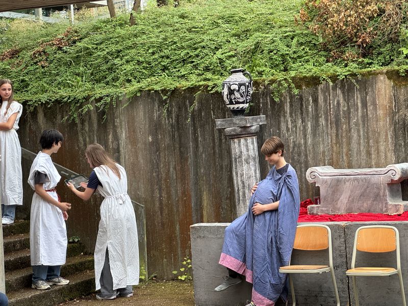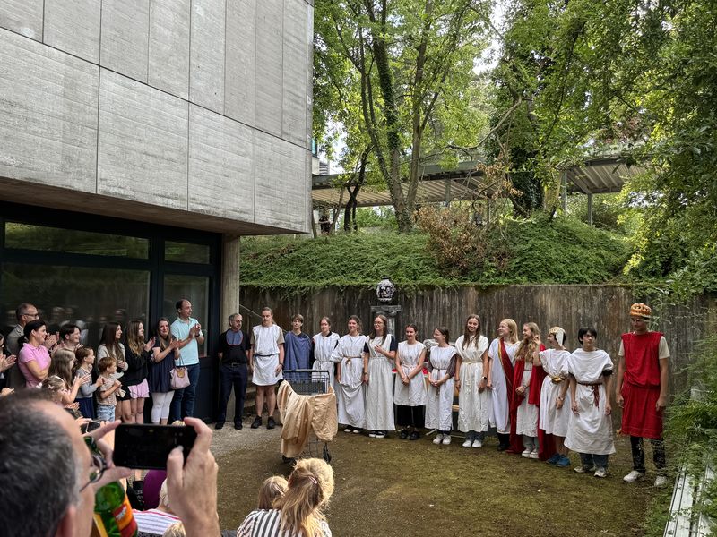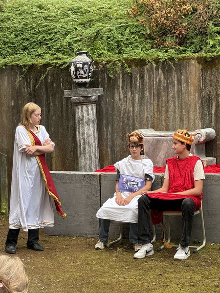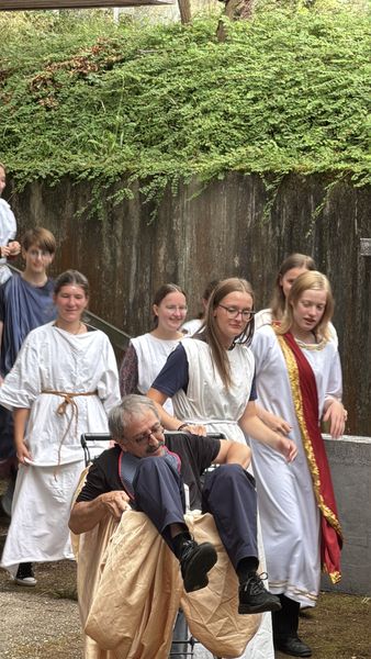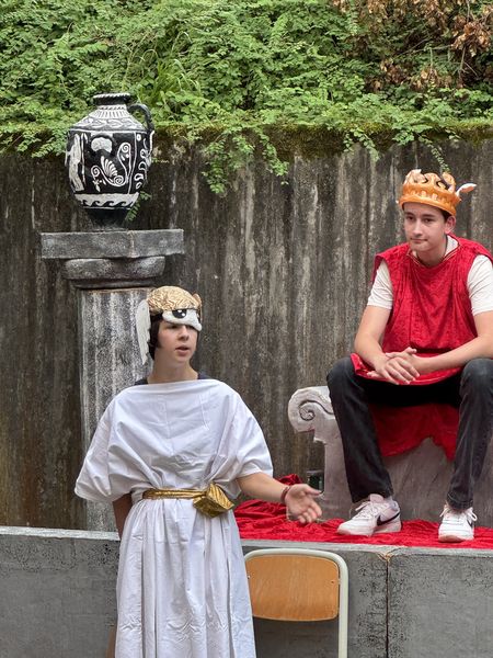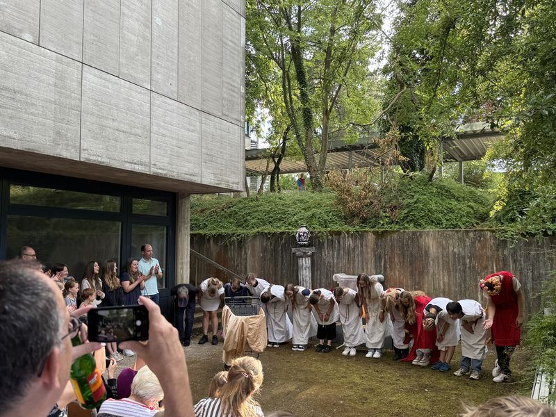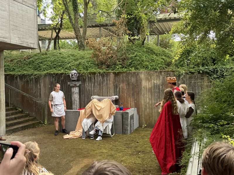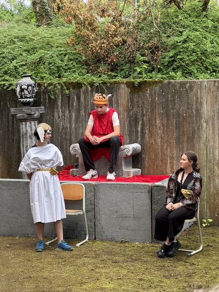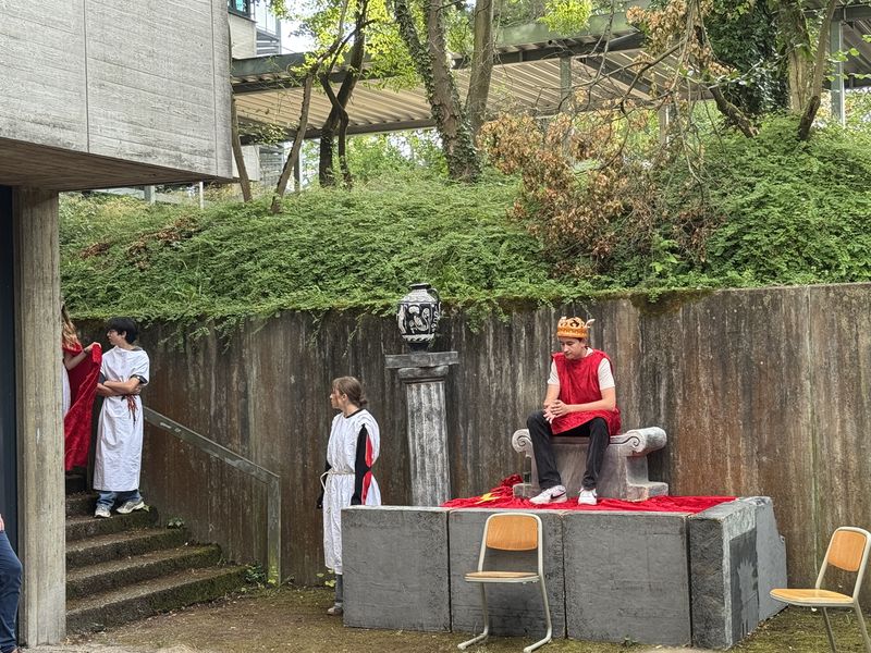 Die Lateinklasse aus der Jahrgangsstufe 9 rund um Herrn Dalmatiner hat sich ein amüsantes Stück um arbeitslose Götter und deren Alltagsprobleme erdacht, das gleich zu Beginn des Fests zum Besten gegeben wurde.