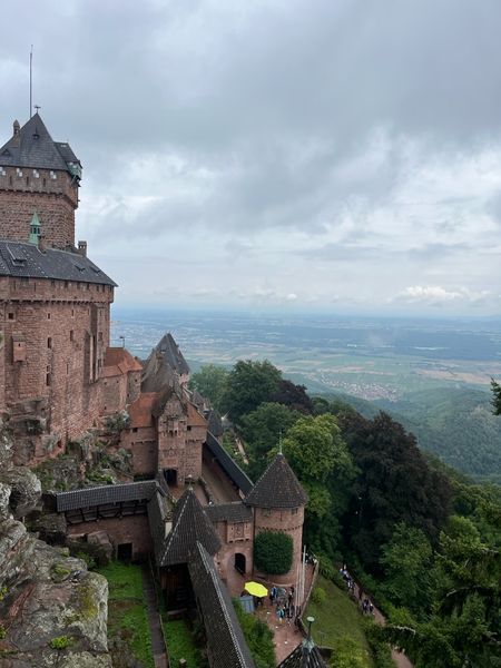 Anschließend fuhren wir zur nahegelegenen Hohkönigsburg (Château du Haut-Koenigsbourg) und machten dort einen Rundgang, bei dem wir viel über die Vergangenheit der Burg lernten. Zudem schauten wir uns die alten Rüstungen und die mittelalterlichen Möbel an und hatten außerdem einen tollen Blick auf die Rheinebene.