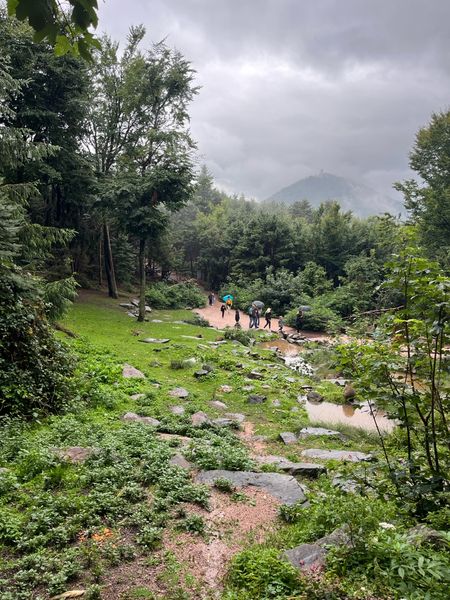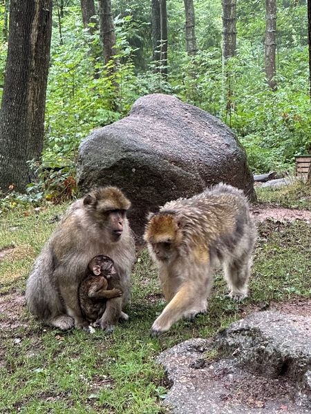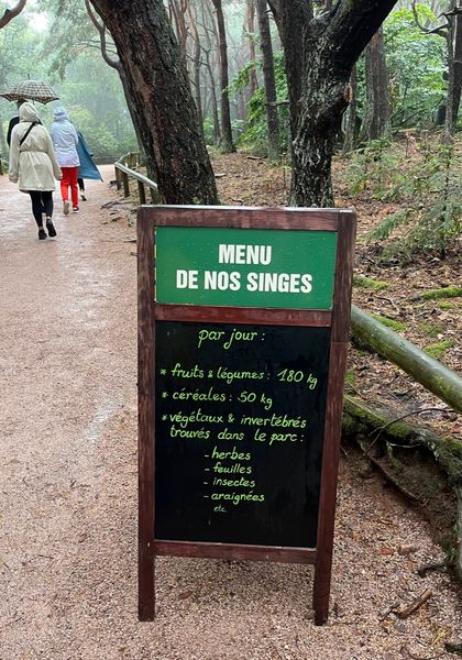 Den ersten Stopp legten wir am Affenberg (la Montagne des Singes) ein. Nach der etwa zweistündigen Busfahrt liefen wir direkt zum Eingang. Anfangs war es nur ein einfacher Wald, bis wir den ersten Affen entdeckten. Nach kurzer Zeit fanden wir immer mehr von ihnen. Einige waren auch in den Ästen der Bäume versteckt. Bei der Fütterung erfuhren wir mehr über die Affenart, die Berberaffen, zum Beispiel woher sie kommen (aus Marokko) und vieles mehr. Im Affenpark leben mehr als 200 von ihnen. Nach der Fütterung und den Sicherheitsanweisungen durften wir den Park in Kleingruppen erkunden. Auch wenn wir einen Meter Abstand zu den Affen halten mussten, machte es trotzdem Spaß sie zu beobachten. Manche aßen, manche ruhten sich auf Bäumen aus und andere spielten sogar miteinander. Wir konnten zwei junge Affen beobachten, die auf einem quergelegten Baumstamm tobten. Obwohl es geregnet hatte, rutschten die Affen nicht auf dem Holz aus. Nachdem wir eine Weile durch den Park gelaufen waren, fanden wir ein „Glücksrad”, an dem wir unser Wissen über die Affen testeten. Es wurden einige einfache, aber auch knifflige Fragen gestellt, die uns ein wenig nachdenken ließen. Als kleinen Preis erhielten wir eine Postkarte, auf der ein paar Affen abgebildet waren. Auf dem Rückweg liefen uns noch einige Affen entgegen, die in Größe und Alter variierten. Einige waren älter und größer, andere noch sehr jung und klein. Es gab auch neun, sehr süße Babys, die immer mit ihren Eltern unterwegs waren. Auch wenn der Regen nicht besonders angenehm war, trugen dieser und der Nebel dazu bei, dass wir uns wie im Regenwald fühlten.