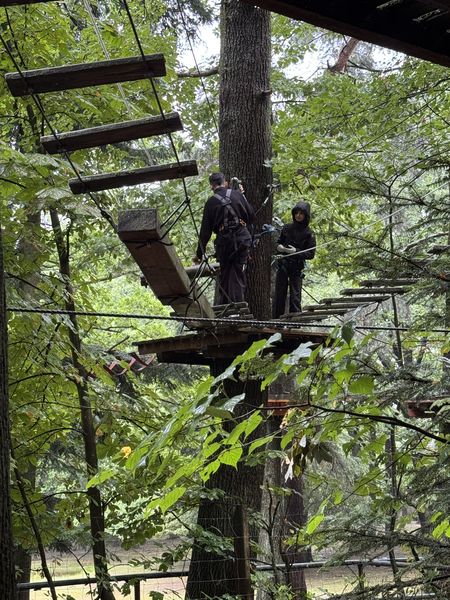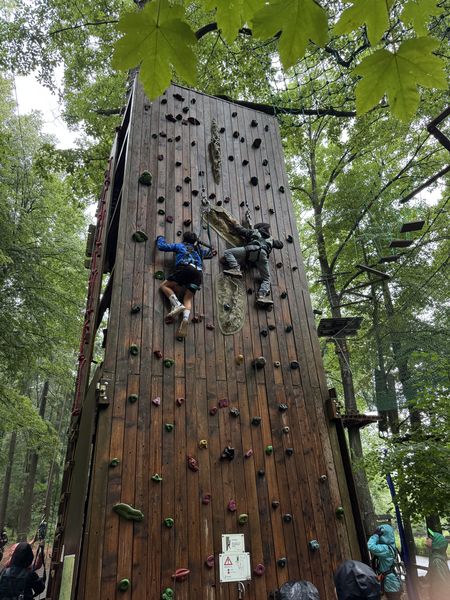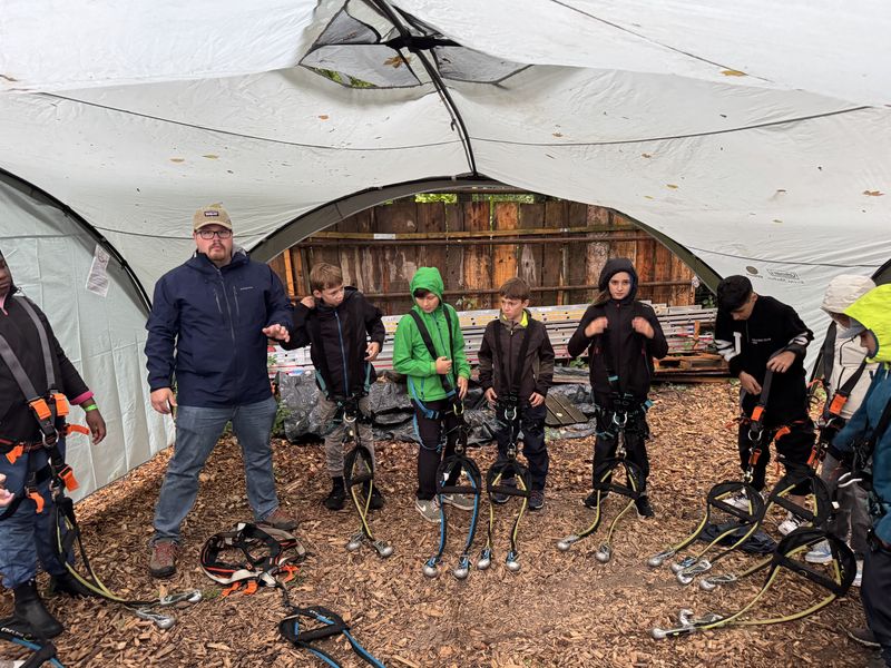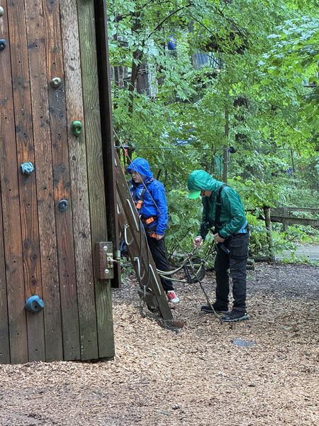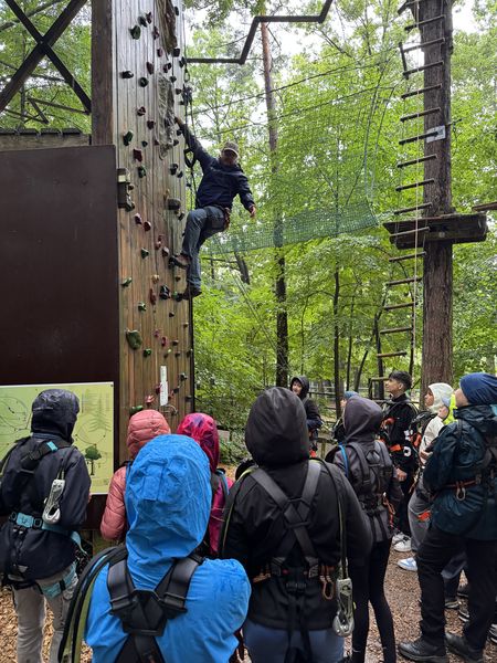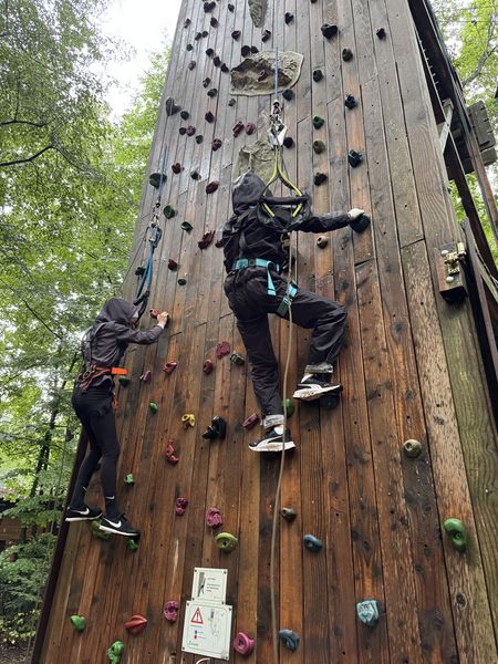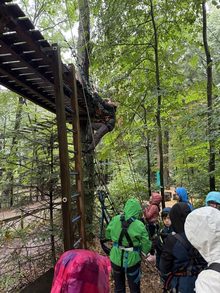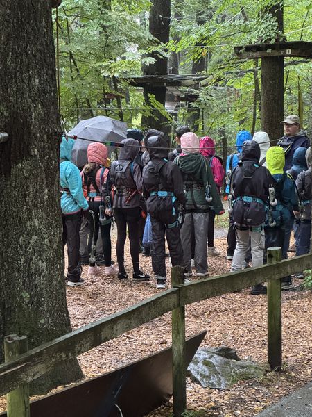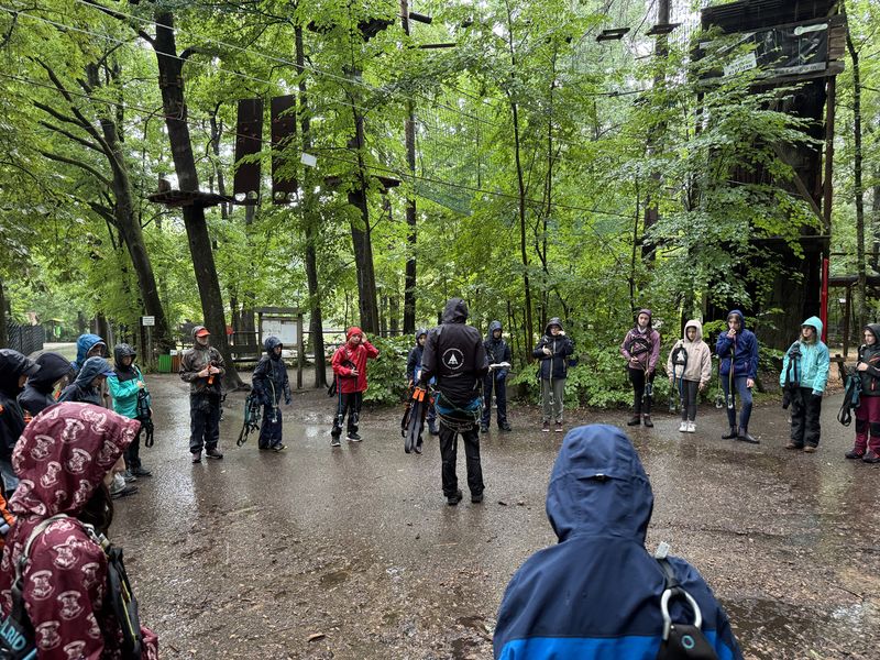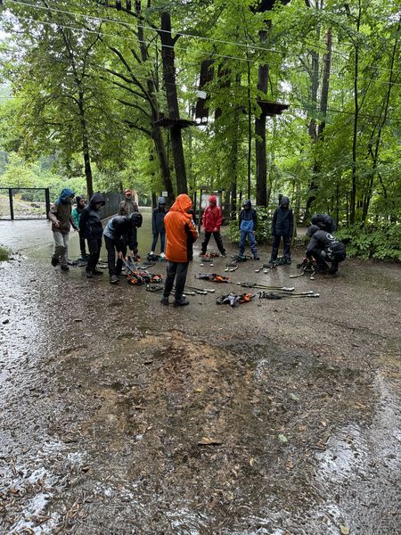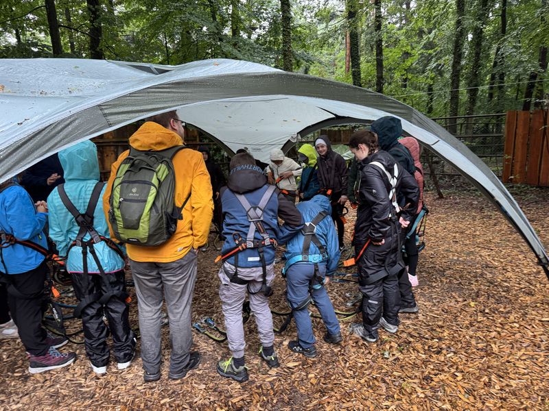 Zum einen trotzten 47 Fünftklässler dem Wetter und begaben sich mit ihren Klassenlehrern Frau Kirschler, Frau Rupp, Frau Schmierer und Herrn Weigand gut ausgerüstet in den Kletterpark des Wildparks Pforzheim: Regenjacke, Regenhose, Mütze, feste Schuhe und Wechselkleidung waren die perfekten Begleiter an diesem Vormittag.
