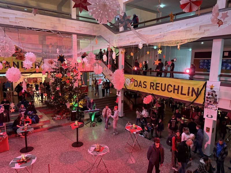 Mit funkelnden Lichtern, neugierigen Blicken und winterlichem Duft erfüllten sich am 27.11.2025 die Flure unseres Gymnasiums: Der Adventsbasar „Reuchlin lights up minds – Wissenszauber im Advent“ brachte Schülerinnen und Schüler, Eltern und Lehrkräfte in einer besonderen Mischung aus vorweihnachtlicher Atmosphäre und lebendigem Forschergeist zusammen.