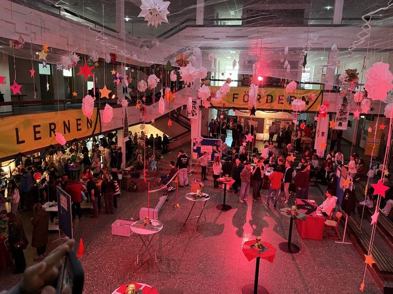 Über den Nachmittag hinweg strömten zahlreiche Besucherinnen und Besucher durch die Flure, ließen sich von den vielfältigen Aktionen an den Ständen verzaubern und genossen die warmherzige, vorweihnachtliche Atmosphäre.
