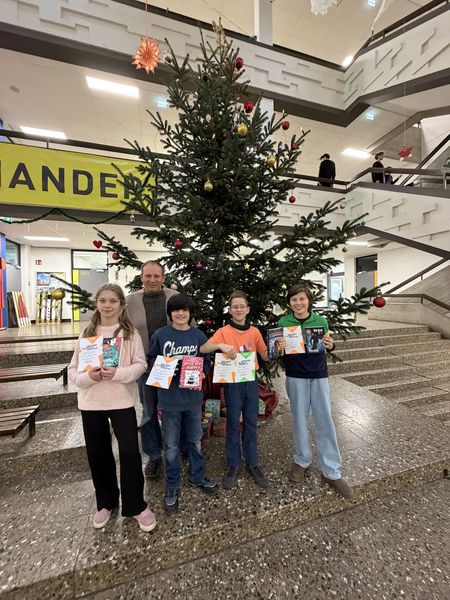 Anschließend musste die Jury die schwierige Entscheidung treffen: Als Sieger darf Fredrik Johannsen die Schule beim Stadtentscheid vertreten. Alle Klassensieger erhielten eine Urkunde und einen Buchpreis, den Herr Adam überreichte. Herzlichen Dank an ihn und den Förderverein für die Buchspenden! Wir gratulieren allen vier Klassensiegern ganz herzlich und drücken Fredrik die Daumen für die nächste Runde!