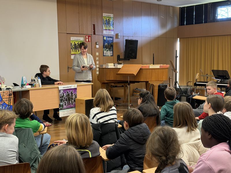 Der Schulentscheid des Vorlesewettbewerbs stand an. Da dieses Jahr nur zwei Klassen an den Start gingen, durften jeweils zwei SchülerInnen teilnehmen. Als Jury waren neben Frau Niemann, Frau Faber und Frau Kirschler auch Herr Adam und Herr Essich dabei.