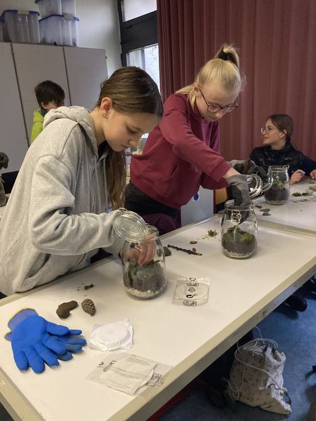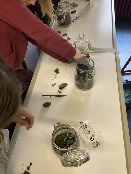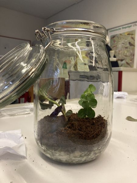 Der eigenen Kreativität sind bei der Gestaltung keine Grenzen gesetzt – der kleine Garten darf gerne mit Stöcken, schönen Steinen oder anderen Objekten dekoriert werden. Nach einer kurzen Phase, in der die Schülerinnen und Schüler überprüfen müssen, ob zu viel oder zu wenig gegossen wurde, wird das Glas dann endgültig verschlossen und kann die NWT-Gruppe dann durch das ganze Schuljahr und hoffentlich noch länger begleiten!