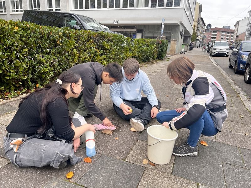 Der Geschichtekurs des kommenden Abiturjahrganges erlebte am 17. Oktober 2025 bei der Reinigungsaktion der Stolpersteine auf der Rodplatte und deren Umgebung Historie hautnah.
