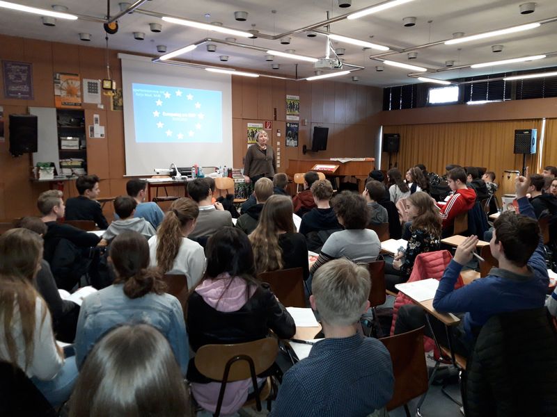 Am 25. März 2019 erwartete uns anstelle normalen Unterrichts ein besonderer Besuch: Katja Mast, stellvertretende Vorsitzende der SPD Bundestagsfraktion, verbrachte zwei Schulstunden mit uns, den Klassen 9a und 10ab, um mit uns über Politik, insbesondere Europapolitik, zu diskutieren.