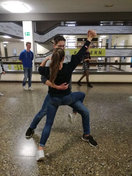 Um uns auf das bevorstehende Tonen von Tanzpaaren vorzubereiten, versuchten wir uns selbst an den unterschiedlichen Tanzfiguren, um einen genaueren Eindruck zu erlangen.