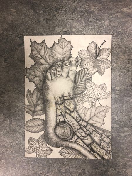 Nackte Füße im Laub